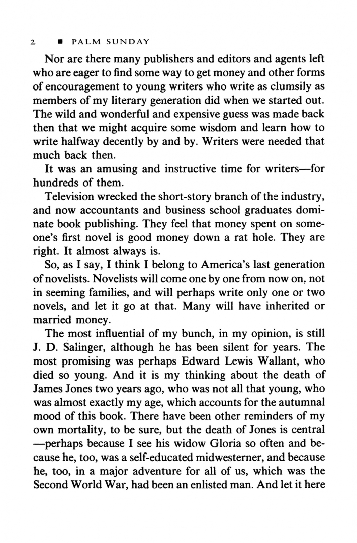An 'autobiographical collage' of speeches, stories and essays, in Palm Sunday, Kurt Vonnegut writes beguilingly about everything from country music to George Bush, his favourite comedians to his mother's midnight mania, and bittersweet tributes to a dead best friend and a dead marriage.
