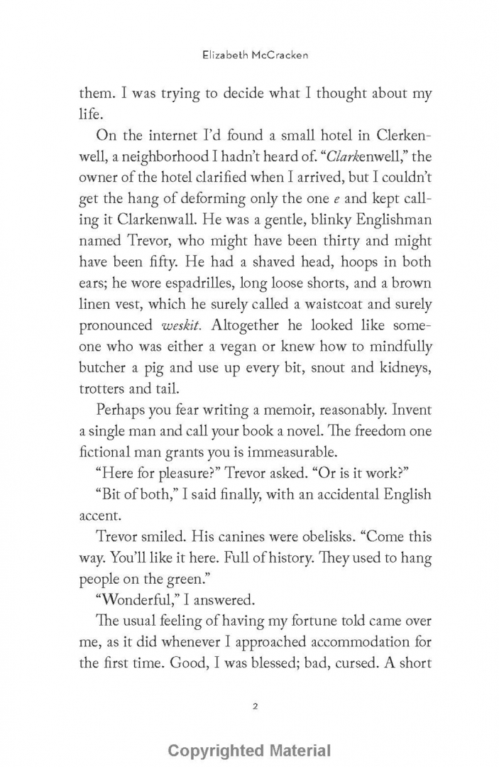 Ten months after her mother's death, the narrator of The Hero of This Book walks across London on a quiet Sunday. The city was a favourite of her mother's, and as the narrator wanders the streets, she finds herself reflecting on her mother's life and their relationship. Thoughts of the past meld with questions of the future: back in New England, the family home is now up for sale, its considerable contents already winnowed.
