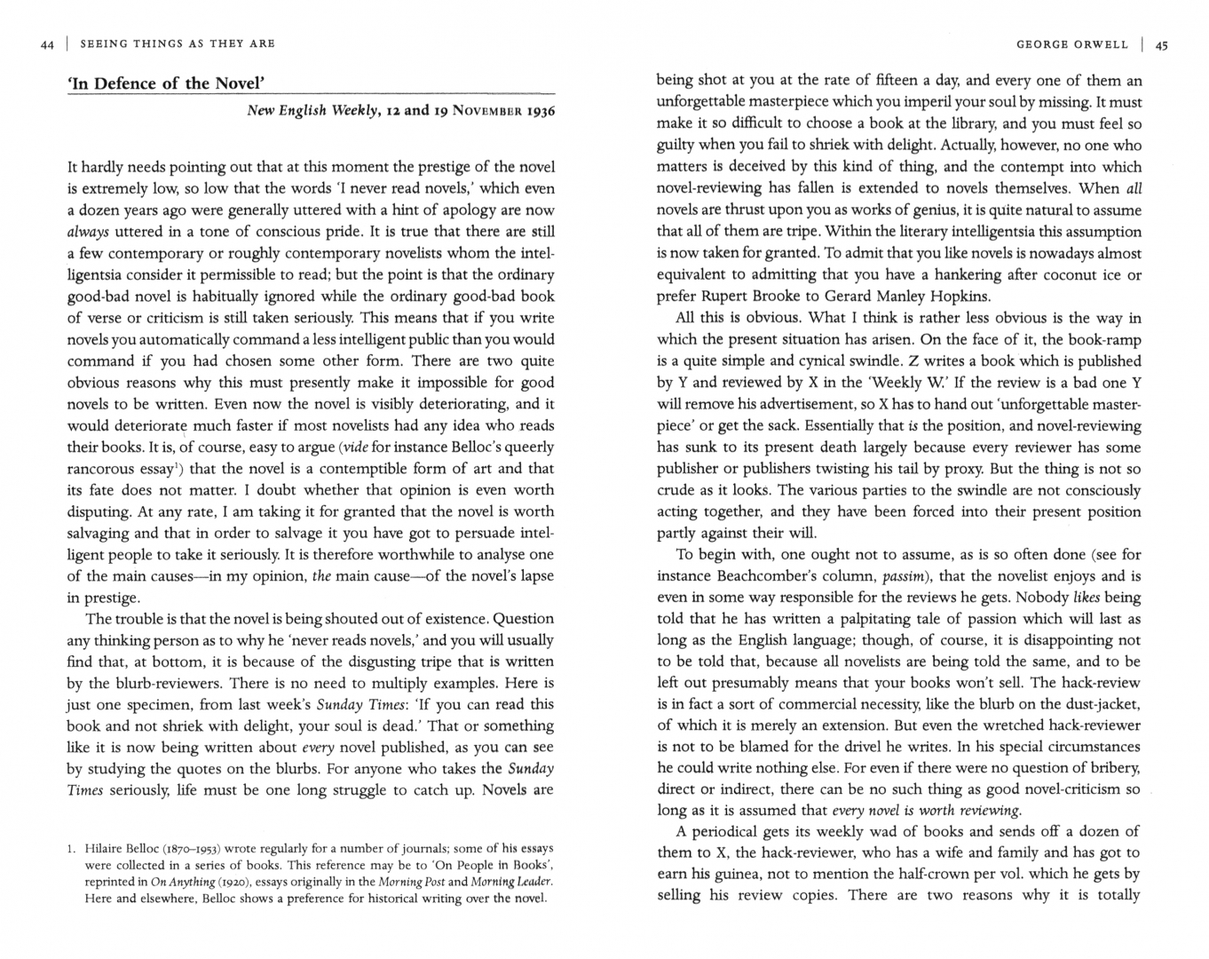 George Orwell wrote, in his words, from 'a desire to see things as they are'. This new collection of his journalism and other writings, including articles, essays, broadcasts, poems, book and film reviews from across his career, shows his unmatched genius for observing the world. Whether discussing Polish immigration or Scottish independence, railing against racism, defending the English language or holding an imaginary conversation with Jonathan Swift, these pieces reveal a clear-eyed, entertaining and eternally relevant chronicler of his age.