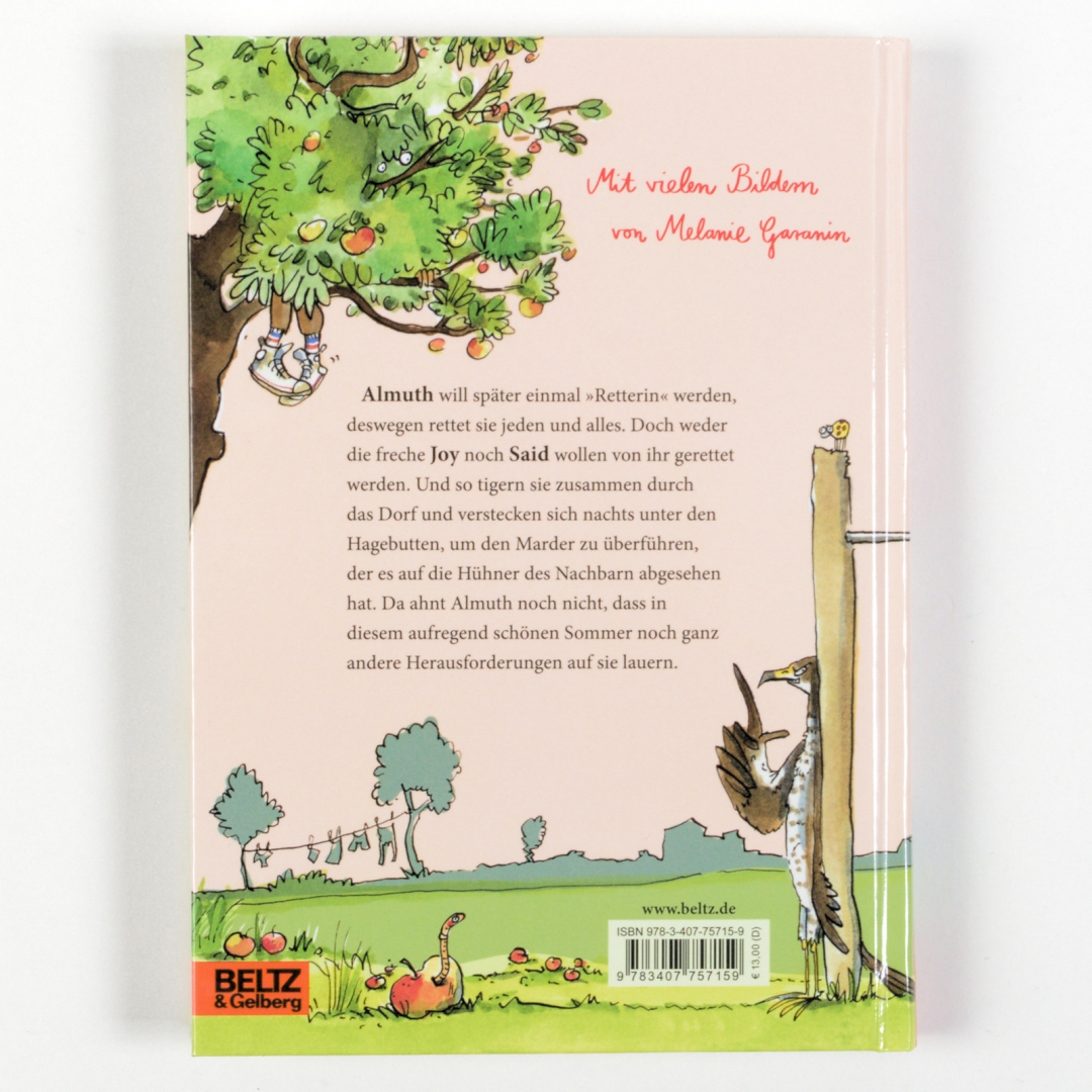 Almuth will später einmal zur Feuerwehr und »Retterin« werden. Jetzt muss sie erstmal das Huhn Ingeborg vor dem Hahn retten. Bald hat sie auch die freche Joy und Said, den Jungen vom Feuerwehrteich, in ihr Herz geschlossen, mit denen sie durch die Gegend tigert. Als sie mit ihnen unter Himbeersträuchern und Hagebutten auf der Lauer liegt, um den Marder zu überführen, hofft sie, dass alles gut geht. Sie ahnt noch nicht, dass in diesem Sommer noch ganz andere Herausforderungen auf sie lauern und dass man von Hühnern eine Menge Dinge über das Leben lernen kann. Ein inniger Roman für Kinder, aufregend wie das Leben, feinsinnig, klug und witzig erzählt.
