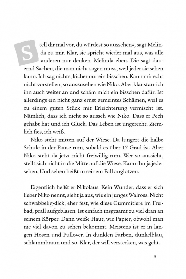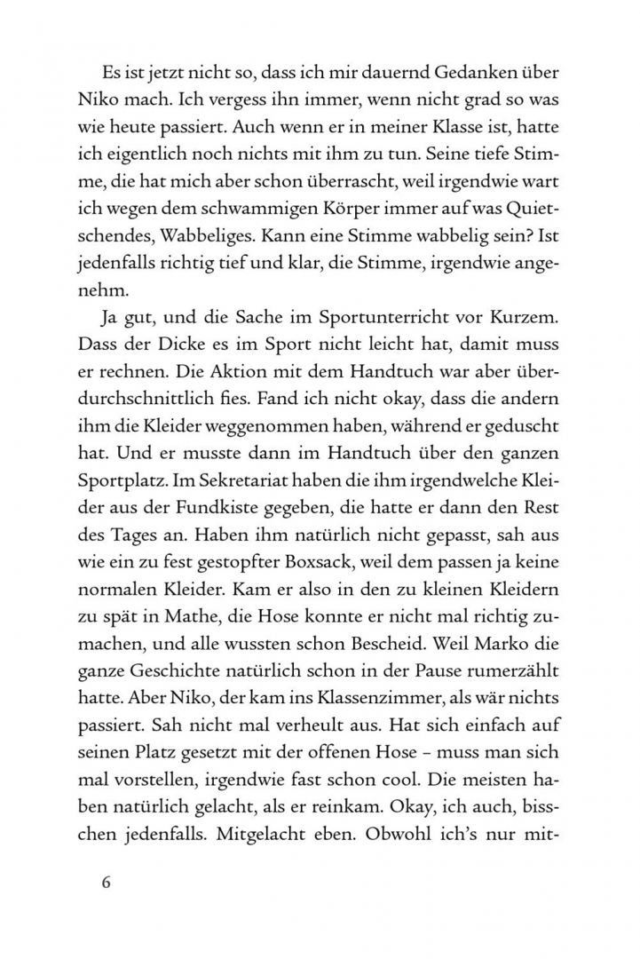 Manchmal ist es diese eine Sekunde, die alles entscheidet: Niko, der ziemlich dick ist und sich oft in Parallelwelten träumt, rettet die schöne Sera vor einer Grapschattacke. Sera fordert Niko daraufhin auf der Klassenfahrt zum Tanzen auf, was verrückt ist und so aufregend anders, wie alles, was in den nächsten Tagen passiert. Vielleicht ist es der Beginn einer Freundschaft von zweien, die gegensätzlicher nicht sein könnten, aber im entscheidenden Moment mutig über ihre Schatten springen.