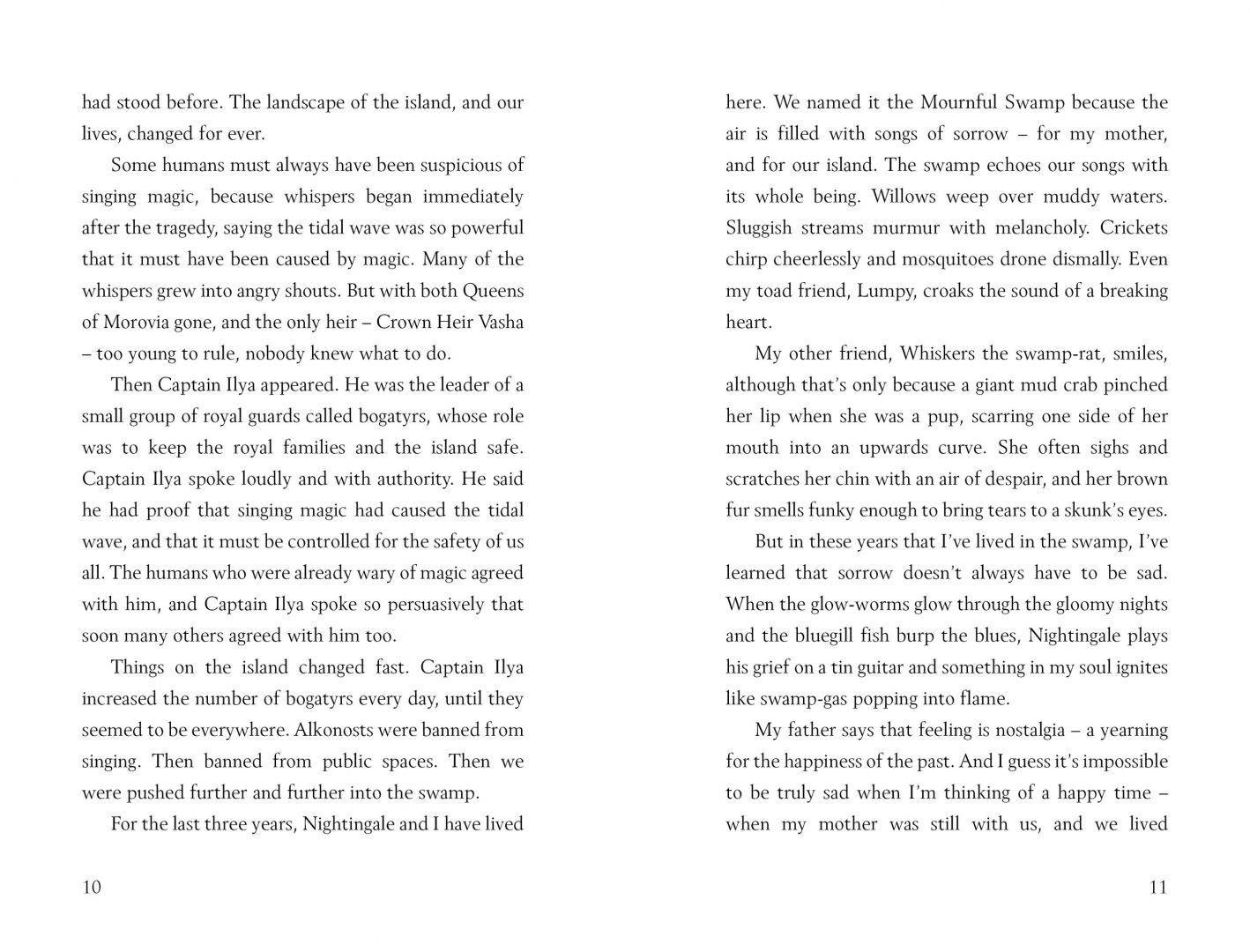 When her father is captured for taking a precious jewel, Linnet must set out on a treacherous journey. Travelling through alligator pools and sinking sands with new friends, she learns how to be brave, and discovers something even more powerful than singing magic. Something that could save her father, and heal the broken heart of her island once more...