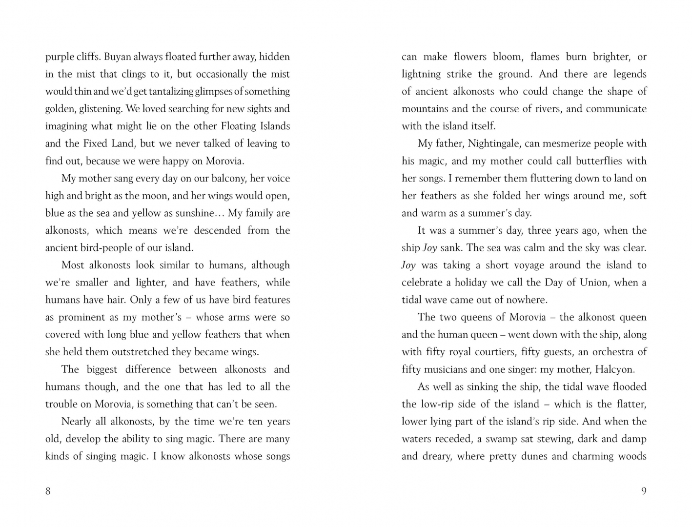 The Island of Morovia is shaped like a broken heart. The humans live on one side of the island, and the alkonosts - the bird-people - live on the other. But it wasn't always this way...