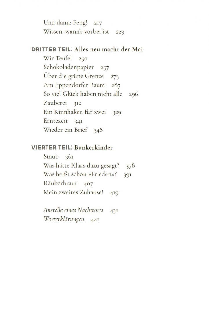 Januar 1945 - Januar 1946: Deutschland liegt in Trümmern, die halbe Welt ist unterwegs, um die alte oder eine neue Heimat zu finden: Mit dem letzten Zug können Rena (16), ihre zwei Brüder, die kleine Jutsch und ihre Mutter aus dem »Wartheland« im von Deutschland besetzten Polen fliehen. Sie stranden in dem norddeutschen Dorf Kewenow. Die Arbeit auf dem Feld und in den Ställen ist hart, aber wenigstens fallen keine Bomben und es gibt Kartoffeln und Kirschen. Und Rena hat Glück: Sie begegnet dem Pastorensohn Klaas, eine Liebe, die ihr die Augen öffnet. Während sich die Älteren mit ihrer Schuld auseinandersetzen müssen, sehnt Rena sich nach einem neuen, ehrlichen Leben. Ein bewegender Roman eines großen Erzählers über Kinder, die sich von den Eltern nichts mehr sagen lassen und immer mutiger werden - je größer ihre Hoffnung ist, ihren Platz in der chaotischen Nachkriegszeit zu finden.