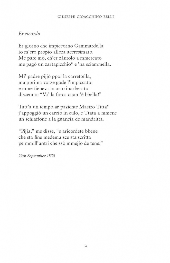 Set against the chequered background of Rome, the city of the six Ps - Pope, priests, princes, prostitutes, parasites and the poor - Belli's sometimes scandalous sonnets deal with life's elementals: love, death, sex, food, money, family, religion and politics.