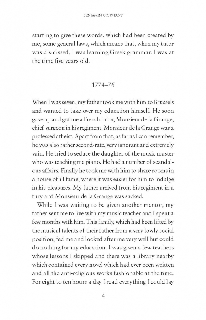 Published posthumously, The Red Notebook is an account of the youth of the author of the seminal Romantic novel Adolphe, relating Constant’s eccentric and peripatetic education, his introduction to European high society and the kindling of his literary ambitions – as well as his often comic and calamitous early experiences with the opposite sex and the development of his ruinous gambling habit.