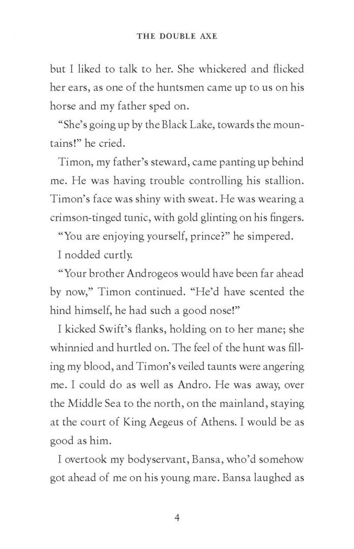 Dark forces are at work in the House of the Double Axe. Stephan, the thirteen-year-old son of King Minos of Crete, stumbles across a terrifying conspiracy. Is the Minotaur, a half man half bull who eats human flesh, real? Or is something even more dangerous threatening to engulf both the palace and the world?