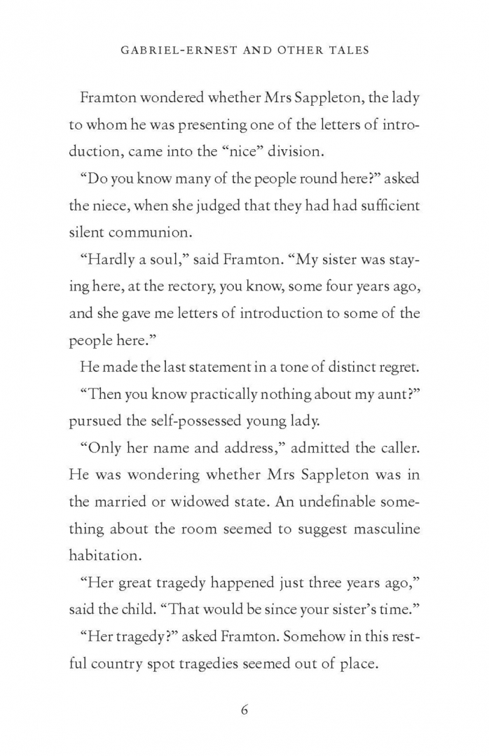 An eerie and disquieting tale about the dark side of adolescence, 'Gabriel-Ernest', written with Saki's trademark wit and mischievousness, is here presented with seven other uncanny and macabre tales, featuring Quentin Blake's inimitable illustrations.