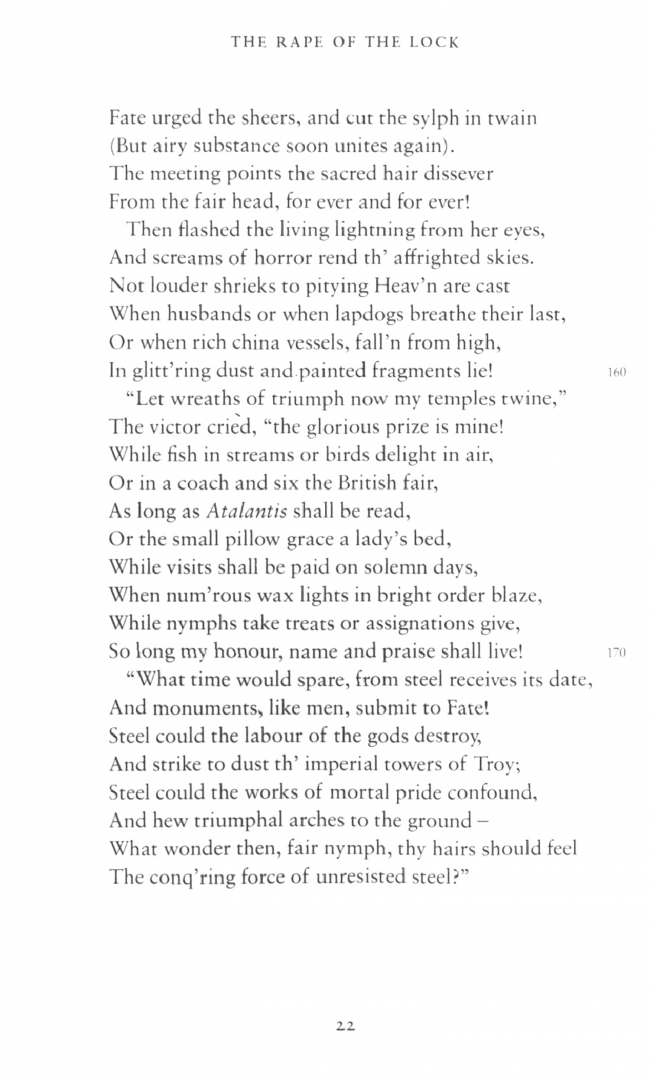 When Lord Petre had the effrontery of cutting off a lock of Lady Arabella Fermor’s hair, a veritable war erupted between the two noble families. A mutual friend, saddened by their estrangement, asked Alexander Pope, then a young poet, to write a poem about it, in order to make a joke of it and “laugh them together again”. But the result – which in its ingenuity and poetical brilliance reaches peaks of epic sublime – concealed darker and more dangerous undertones that unleashed an even greater storm between the parties involved – and among the whole literary world of the time.