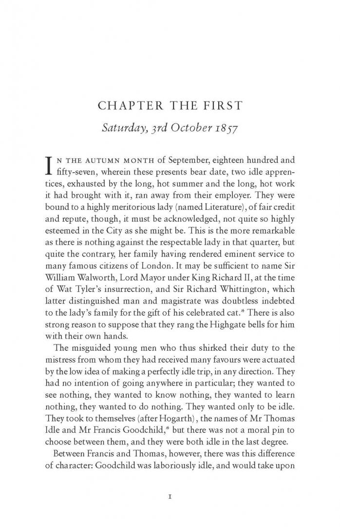 "In the autumn month of September, eighteen hundred and fifty-seven… two idle apprentices, exhausted by the long, hot summer, and the long, hot work it had brought with it, ran away from their employer."