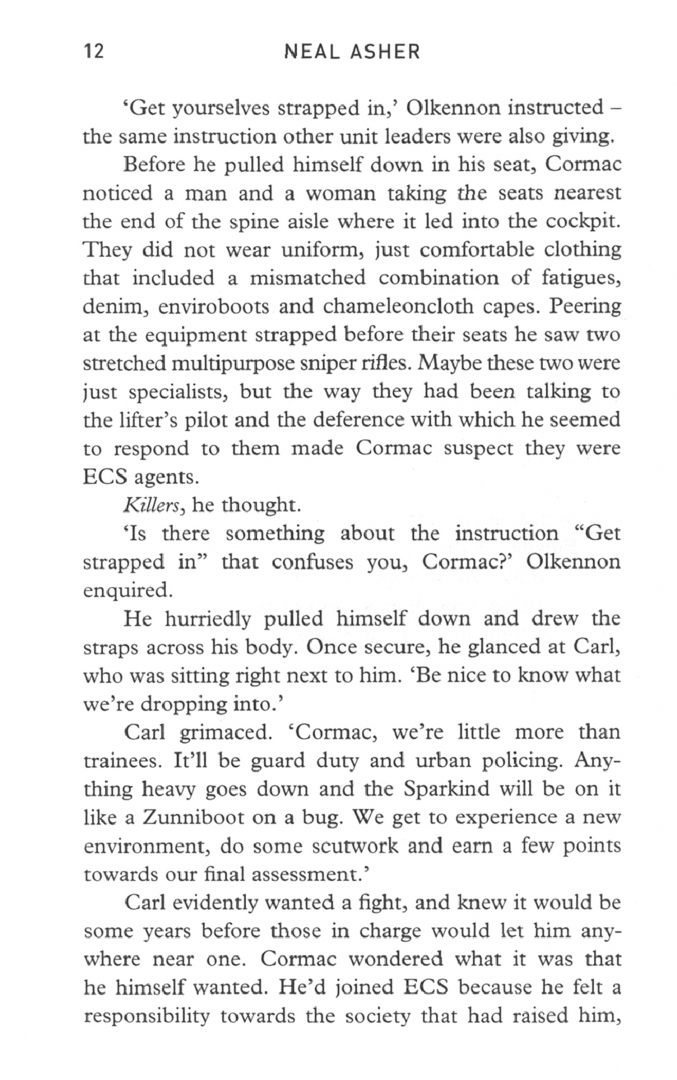 Following the human vs prador war, Ian Cormac signs up with Earth Central Security. He’s sent out to restore order on worlds devastated by alien bombardment. But he learns humanity can be far more dangerous – even those closest to him.
