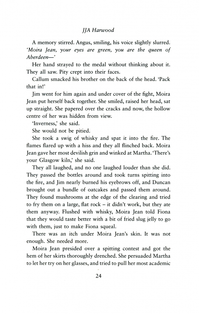 of laughter before parting ways. Moira Jean is being left behind. She too planned to leave once – but her lover died in France and, with him, her future. The friends light a fire and dance. But, with every twirl about the flames, strange new dancers thread between them, music streaming from the trees.