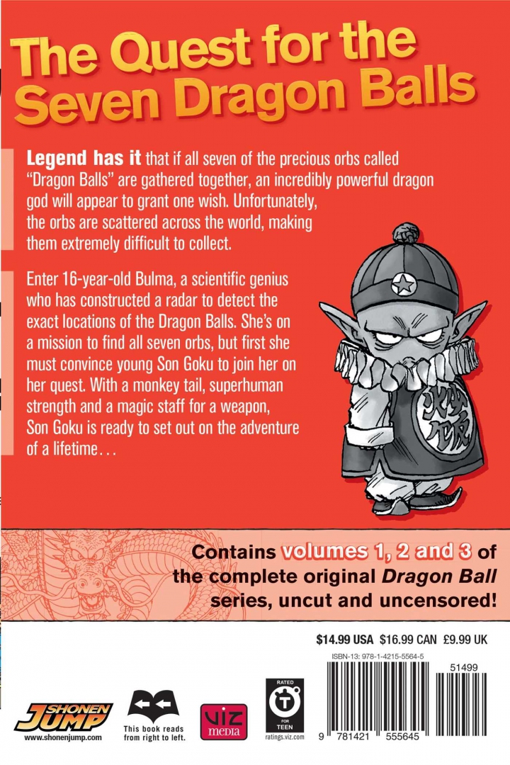 A seminal series from a legendary creator. Dragon Ball, a wry update on the Chinese Monkey King myth, introduces us to Son Goku, a young monkey-tailed boy whose quiet life is turned upside-down when he meets Bulma, a girl determined to collect the seven Dragon Balls. If she gathers them all, an incredibly powerful dragon will appear and grant her one wish. But the precious orbs are scattered all over the world, and to get them she needs the help of a certain super-strong boy...