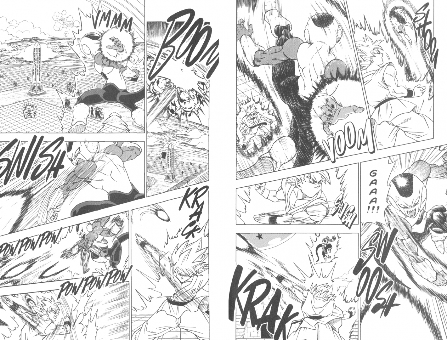 The Universe 6 and 7 Invitational Fighting Tournament continues. Goku faces off against a guy who looks exactly like Freeza. Heck, the guy even has the same transformations and powers as Freeza! Will Goku and the warriors from Universe 7 be able to pull through and win the tournament and its prize—the Super Dragon Balls?!