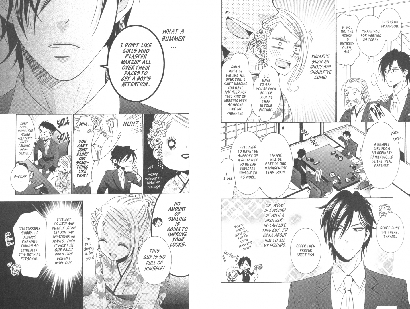 After her older sister refuses to go to an arranged marriage meeting with Takane Saibara, the heir to a vast business fortune, high schooler Hana Nonomura agrees to be her stand-in to save face for the family. But what happens when Hana meets Takane is an unexpected pairing of utter opposites!