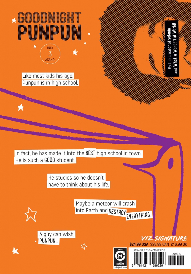 Meet Punpun Punyama. He's an average kid in an average town. He wants to win a Nobel Prize and save the world. He wants to go far away with his true love. He wants to find some porn. But Punpun's life is about to unravel...