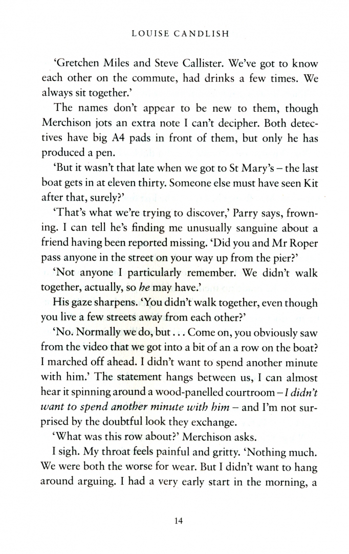 When you get off at your stop, the police are waiting. Another passenger saw you and Kit arguing on the boat home the night before and the police say that you had a reason to want him dead. You protest. You and Kit are friends - ask Melia, she'll vouch for you. And who exactly is this other passenger pointing the finger? What do they know about your lives?