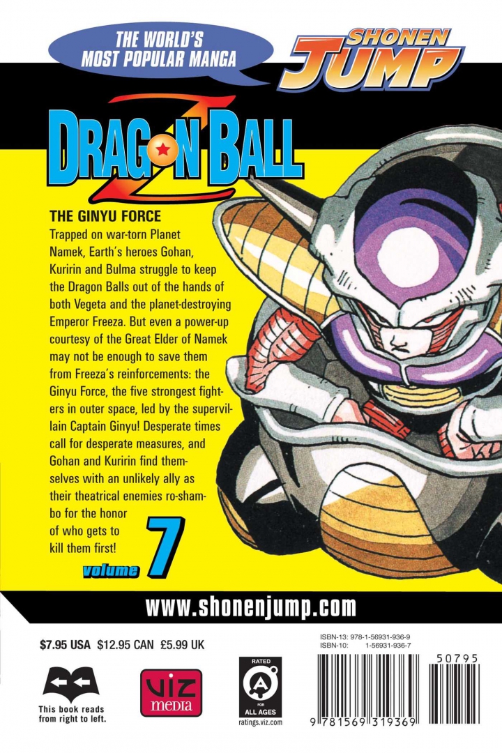 Trapped on war-torn Planet Namek, Earth's heroes Gohan, Kuririn and Bulma struggle to keep the Dragon Balls out of the hands of both Vegeta and the planet-destroying Emperor Freeza. But even a power-up courtesy of the Great Elder of Namek may not be enough to save them from Freeza's reinforcements: the Ginyu Force, the five strongest fighters in outer space, led by the supervillain Captain Ginyu! Desperate times call for desperate measures, and Gohan and Kuririn find themselves with an unlikely ally as their theatrical enemies ro-sham-bo for the honour of who gets to kill them first!