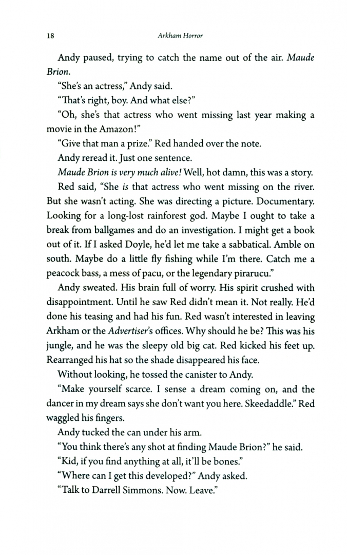 When Arkham Advertiser reporter Andy van Nortwick receives a mysterious film reel in the mail, with a simple note: “Maude Brion is very much alive!”, he steps onto a path which will lead him to the brink of madness. Brion, the famous actress and film director, vanished a year ago on an ill-fated expedition into the Amazon rainforest, delving into the legend of the Spider Queen. Thrilled by the prospect of his big break, Nortwick swings the funds to launch a rescue mission. He gathers a team of explorers and a keen folklorist to bring back Brion and cement his reputation. But deep in the Amazon jungle, the boundaries between intrepid adventurers, dreamers, and deranged fanatics blur inside a web of terror.