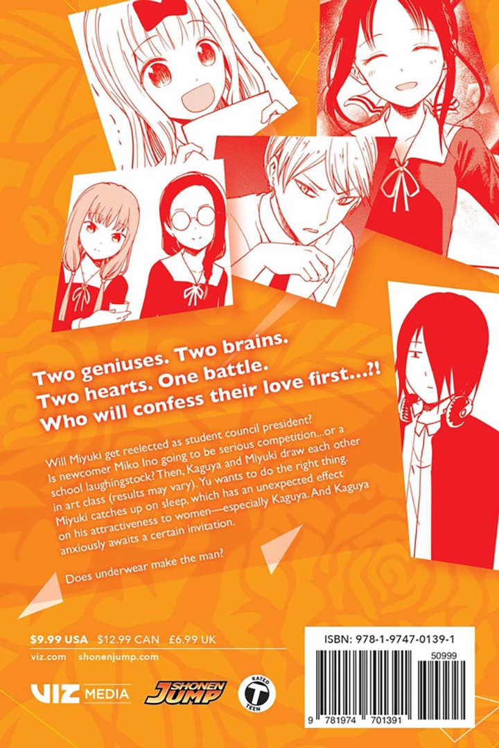 Will Miyuki get reelected as student council president? Is newcomer Miko Ino going to be serious competition…or a school laughingstock? Then, Kaguya and Miyuki draw each other in art class (results may vary). Yu wants to do the right thing. Miyuki catches up on sleep, which has an unexpected effect on his attractiveness to women—especially Kaguya. And Kaguya anxiously awaits a certain invitation.