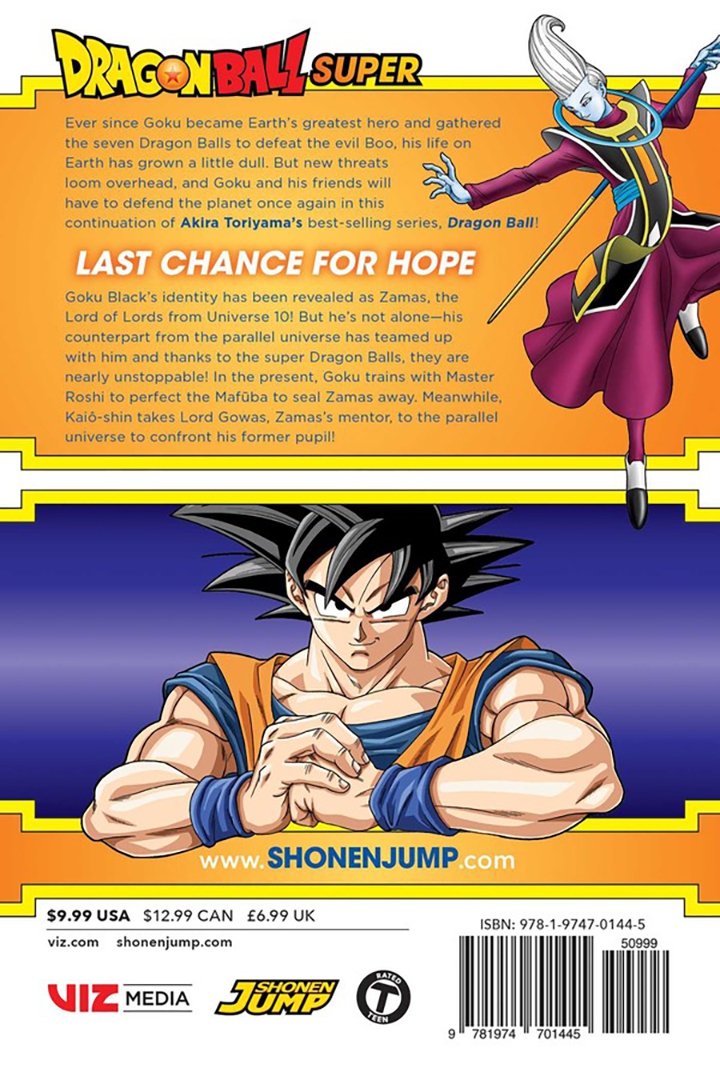 Goku Black’s identity has been revealed as Zamas, the lord of lords from Universe 10! But he’s not alone—his counterpart from the parallel universe has teamed up with him and, thanks to the super Dragon Balls, they are nearly unstoppable! In the present, Goku trains with Master Roshi to perfect the Mafuba and seal Zamas away. Meanwhile, Kaio-shin takes Lord Gowas, Zamas’s mentor, to the parallel universe to try and push his former pupil back to being good!