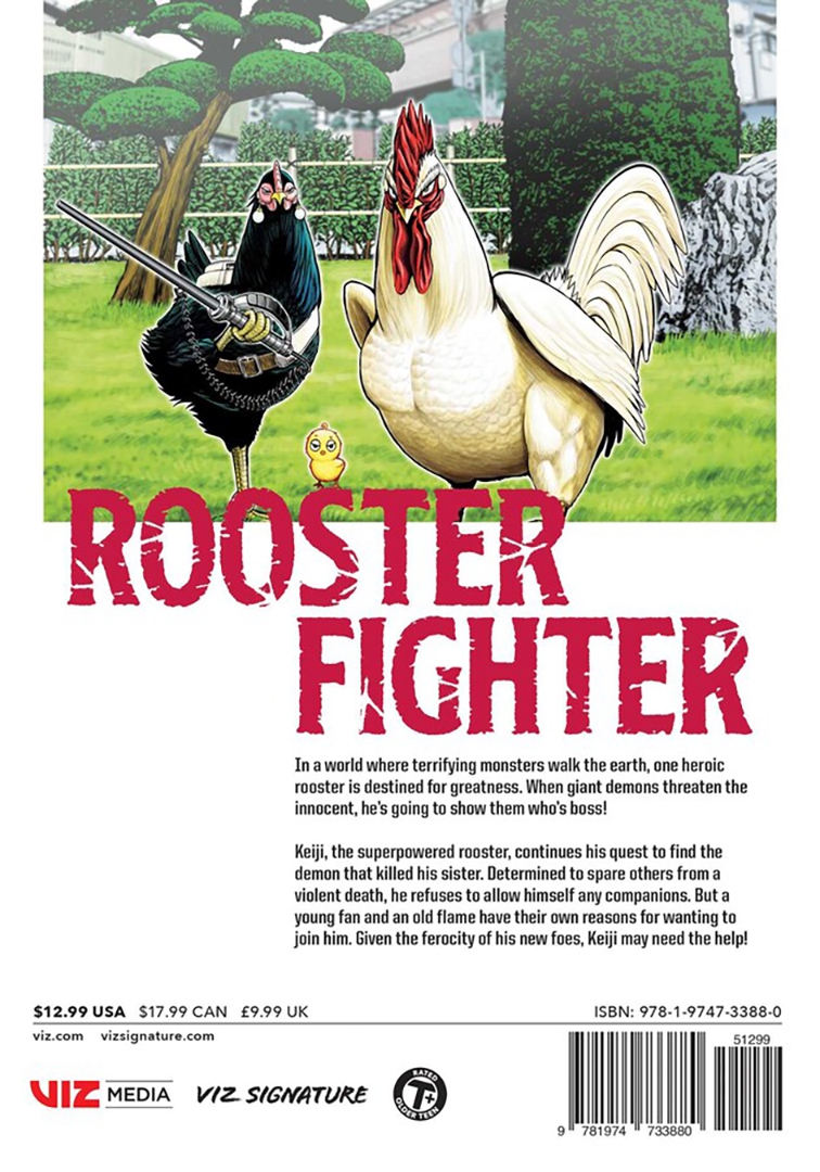 Keiji, the superpowered rooster, continues his quest to find the demon that killed his sister. Determined to spare others from a violent death, he refuses to allow himself any companions. But a young fan and an old flame have their own reasons for wanting to join him. Given the ferocity of his new foes, Keiji may need the help!