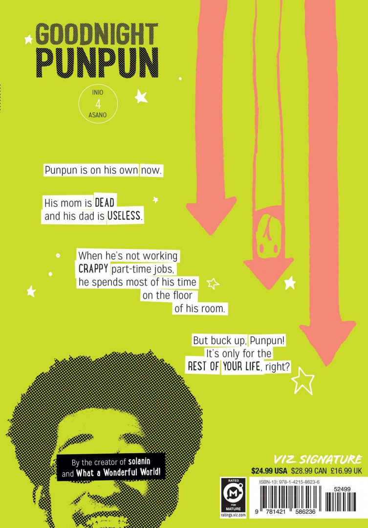 Punpun is having a coming-of-age story, but look out—his slice-of-life adolescence slices back. This is Punpun Onodera’s coming-of-age story. His parents’ marriage is falling apart. His dad goes to jail, and his mom goes to the hospital. He has to live with his loser uncle. He has a crush on a girl who lives in a weird cult. Punpun tries talking with God about his problems, but God is a jerk. Punpun keeps hoping things will get better, but they really, really don’t. This is Punpun Onodera’s coming-of-age story. His parents’ marriage is falling apart. His dad goes to jail, and his mom goes to the hospital. He has to live with his loser uncle. He has a crush on a girl who lives in a weird cult. Punpun tries talking with God about his problems, but God is a jerk. Punpun keeps hoping things will get better, but they really, really don’t.
