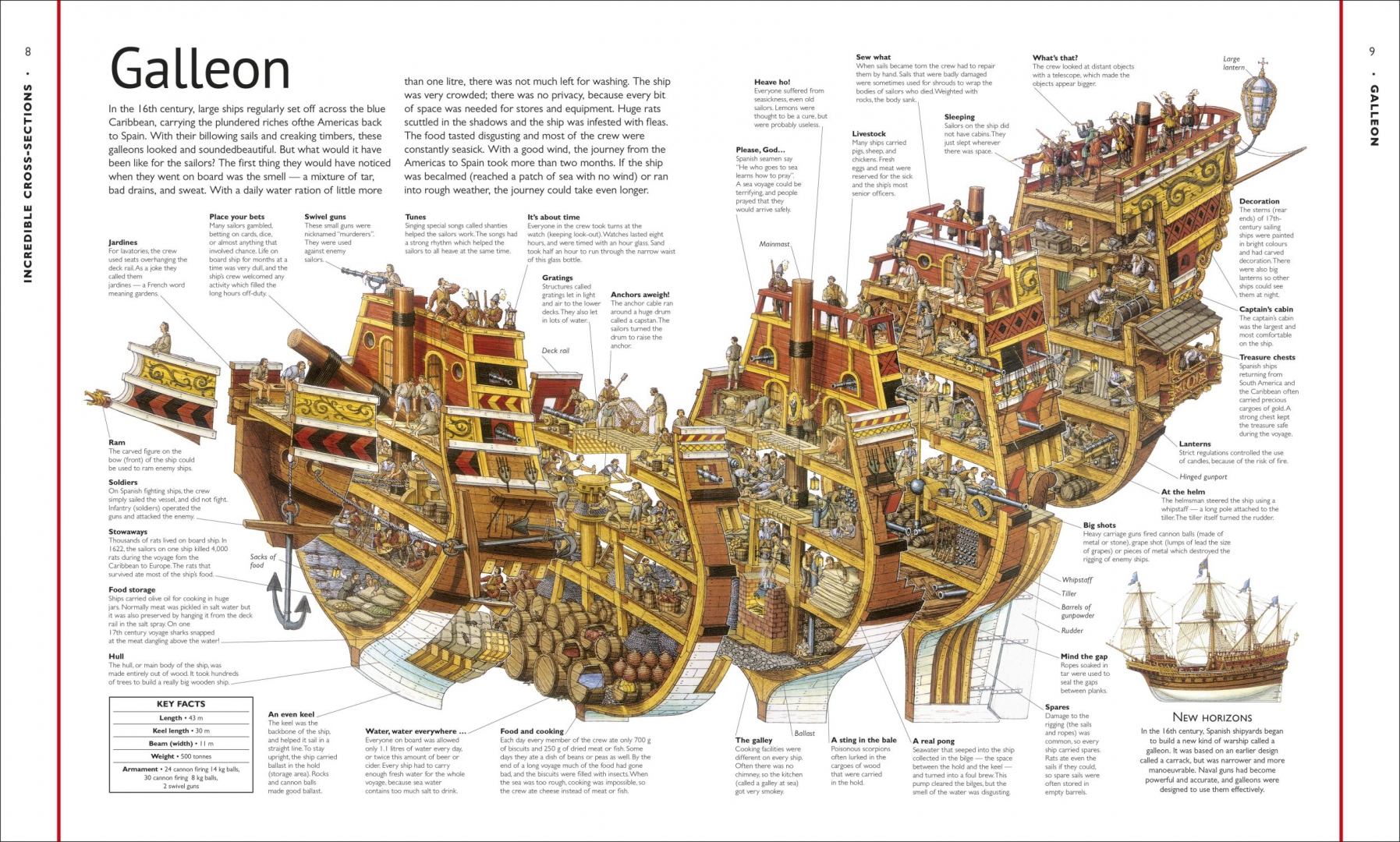 Whether it's a Spanish galleon or a medieval castle, each cross-section slice or exploded view reveals what's going on inside. See the people swarming inside the Empire State Building, the workers busy backstage at an opera house, and where the crew sleep on a jumbo jet. Included also are two impressive fold-outs showing an ocean liner and a steam train.