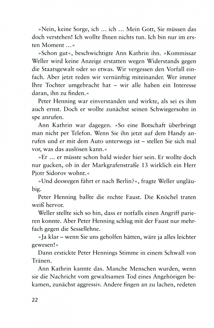 Als Kommissarin Ann Kathrin Klaasen vor der weiblichen Leiche im Schlosspark Lütetsburg steht, erschrickt sie vor sich selbst. Denn sie erwischt sich bei dem Gedanken: Mein Gott, wie schön sie ist. Die Tote sieht aus wie ein Engel, der sich zwischen den Blüten der Rhododendrensträucher verfangen hat. Oder wie eine Eiskunstläuferin, die elfenhafte Sprünge vollzieht, um die Jury zu beeindrucken. Der Mörder hat sich viel Zeit gelassen, um die Leiche so zu präparieren und in dieser Stellung zu drapieren. Und er will Ann Kathrin damit etwas sagen …