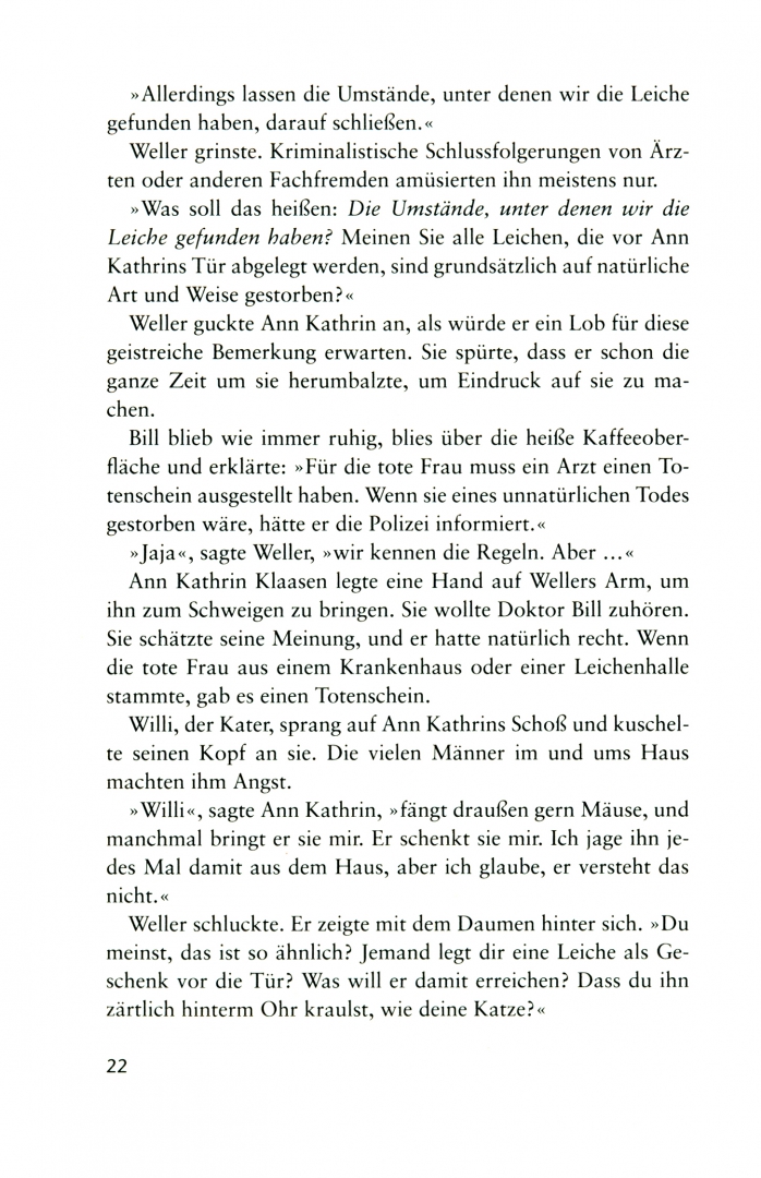 Ann Kathrin sah es schon von weitem. Vor ihrer Haustür lag etwas, das aussah wie ein Sack. Ein Leichensack! Für einen winzigen Moment hoffte Ann Kathrin, dass sich jemand einen dummen Scherz erlaubt hatte. Doch dann sah sie die Wangenknochen einer Frau. Einer toten Frau.