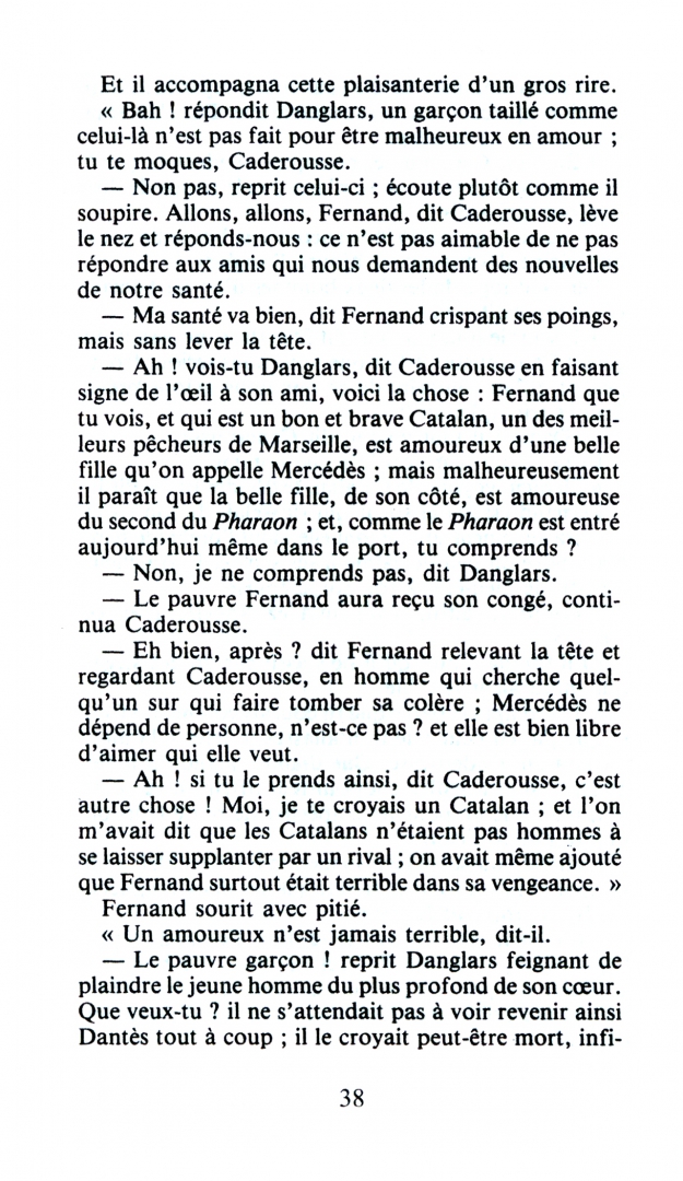 Monte-Cristo est un surhomme, un grand seigneur fastueux dont Dumas disait modestement que Dieu ne pouvait rien lui refuser. Comte d’emprunt, il est d’abord Edmond Dantès, l’ancien marin jeté dix ans durant au fond du château d’If par des ennemis dont il ignore tout. La rencontre de hasard avec l’abbé Faria, prélat italien détenteur d’un fabuleux trésor, lui donne les moyens de sa vengeance...