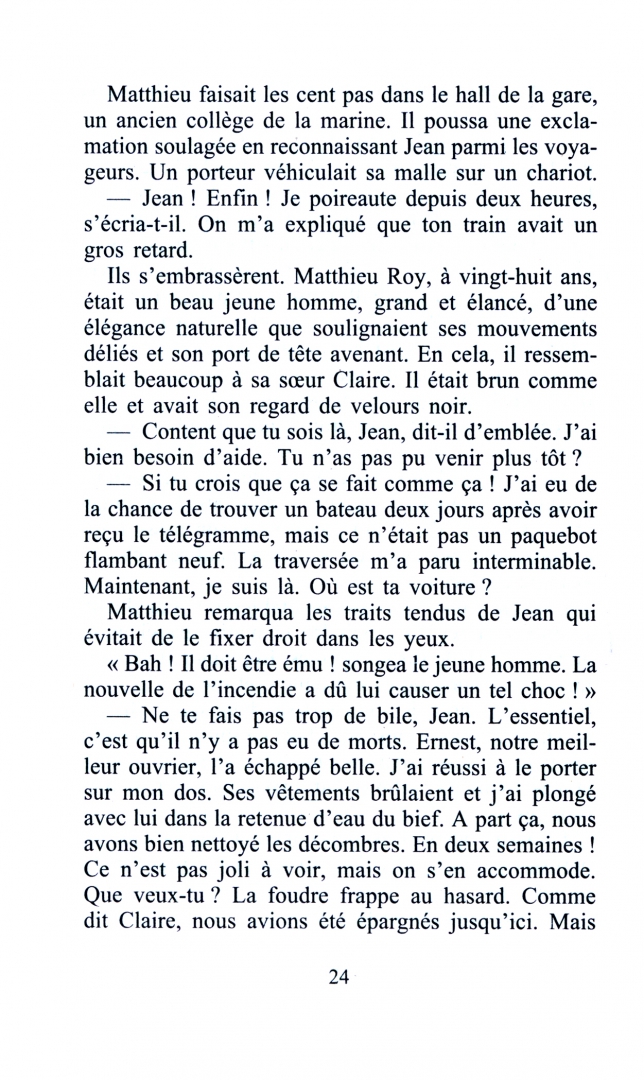 Charente, 1925. Lorsque la foudre frappe les étendoirs du Moulin du Loup, provoquant un incendie qui ravage la majeure partie des bâtiments, Claire Roy est seule dans le logis miraculeusement épargné par les flammes. Elle attend Jean, son mari, parti pour le Canada avec Angela, leur fille adoptive. Quand il rentre enfin, elle retrouve un homme taciturne et distant…Devant la famille réunie, Angela, enceinte, fait éclater la tempête qui brise les cœurs et les âmes.