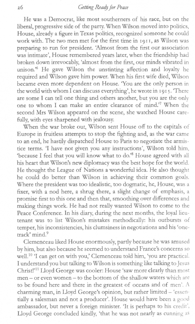 Between January and July 1919, after the war to end all wars, men and women from all over the world converged on Paris for the Peace Conference. At its heart were the leaders of the three great powers - Woodrow Wilson, Lloyd George and Clemenceau. Kings, prime ministers and foreign ministers with their crowds of advisers rubbed shoulders with journalists and lobbyists for a hundred causes - from Armenian independence to women's rights. Everyone had business in Paris that year - T.E. Lawrence, Queen Marie of Romania, Maynard Keynes, Ho Chi Minh. There had never been anything like it before, and there never has been since.