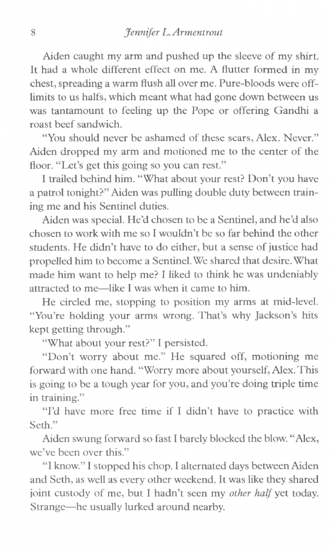 For Alexandria, being destined to become some kind of supernatural electrical outlet isn't exactly awesome - especially when her 'other half' is everywhere she goes. Seth's in her training room, outside her classes, and keeps showing up in her bedroom - so not cool. Their connection does have some benefits, like staving off her memories of the tragic showdown with her mother, but it has no effect on what Alex feels for the forbidden, pure-blooded Aiden.