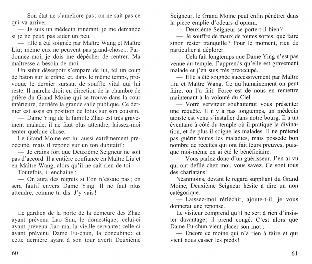 Un roman d’envoûtement et de vérité, récit d’une passion – celle d’un Tristan et Iseult chinois, avec ses codes et ses interdits aussi précis que stricts – qui n’est pas seulement affaire de cœur et des sens, mais engage toute la dimension spirituelle de l’être, ouvrant sur le mystère de l’univers et le transfigurant.