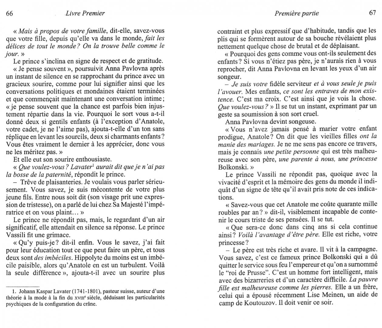 "Eh bien, mon prince, Genes et Lucques ne sont plus que des apanages, des domaines de la famille Buonaparte".