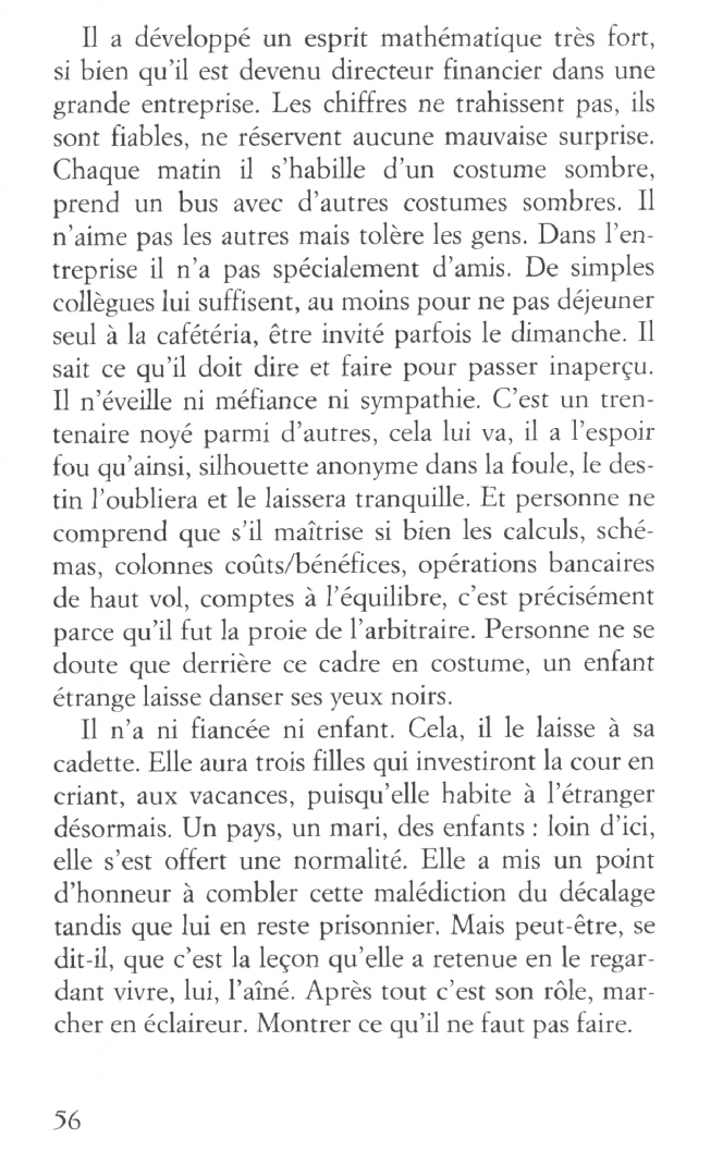 C’est l’histoire d’un enfant différent, toujours allongé, aux yeux noirs qui flottent. C’est l’histoire de sa place dans la maison cévenole où il naît, au milieu de la nature puissante ; de sa place dans la fratrie et dans les enfances bouleversées. Celle de l’aîné, qui, dans sa relation fusionnelle avec l’enfant, s’abandonne et se perd. Celle de la cadette, dans la colère et le dégoût de celui qui a détruit l’équilibre. Celle du petit dernier qui a la charge de réparer, tout en vivant escorté d’un frère fantôme. Comme dans les contes, les pierres de la cour témoignent.