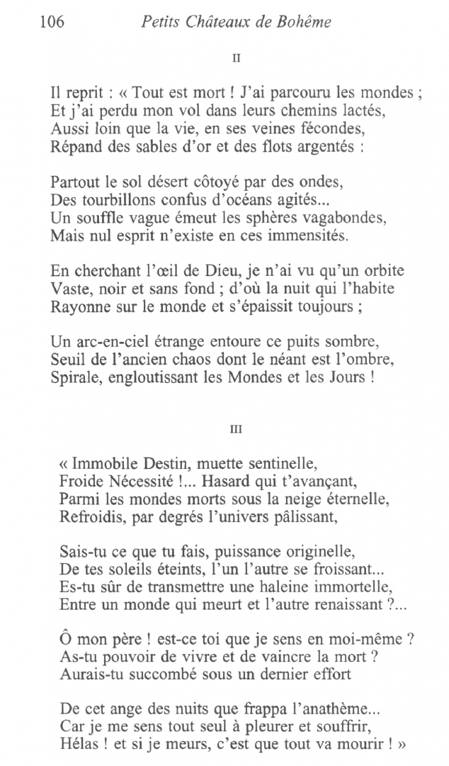Un tel monde révolu est ce qui définit au plus près les œuvres ici réunies où se retrouvent à la fois le « rêveur en prose » et le poète des Odelettes et des Chimères. Les Petits châteaux de Bohême recomposent les âges de Nerval ; les Promenades et Souvenirs ne séparent pas le passé des lieux que l’écrivain traversa. Quant aux Filles du Feu, c’est sous le titre Amours perdues qu’il songea un moment à les publier. Comme souvent chez Nerval, ces différentes œuvres ne cessent pas d’être une quête.