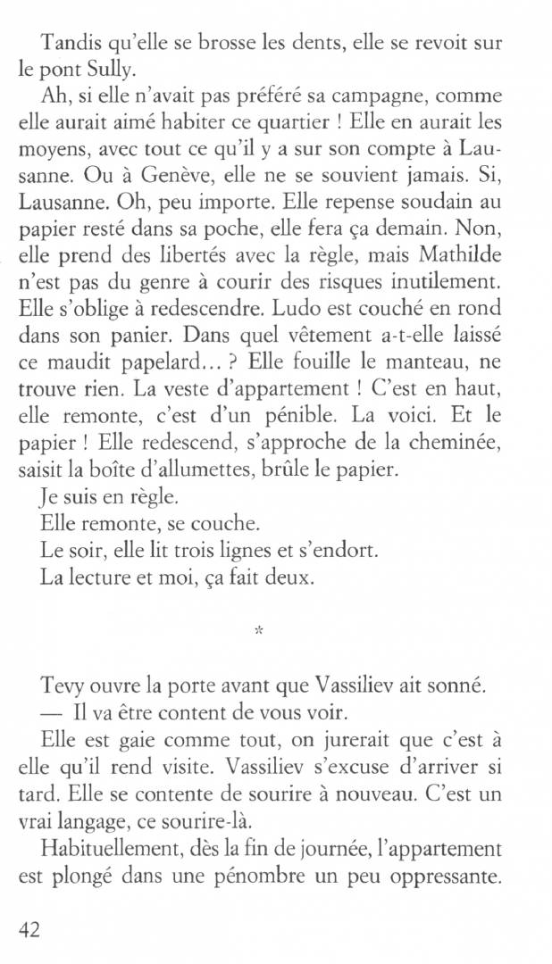 « Avec Mathilde, jamais une balle plus haute que l'autre, du travail propre et sans bavures. Ce soir est une exception. Une fantaisie. Elle aurait pu agir de plus loin, faire moins de dégâts, et ne tirer qu'une seule balle, bien sûr. »