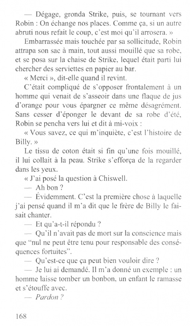 Billy se rend chez Cormoran Strike pour lui parler d'un meurtre dont il a été témoin quand il était enfant : il aurait vu une fillette se faire étrangler. Mais le jeune homme, qui souffre d’une maladie mentale, se sauve avant que Strike ait pu l’interroger plus longuement. Le célèbre détective privé et sa partenaire Robin Ellacott décident néanmoins de prendre Billy au sérieux et commencent leurs recherches.