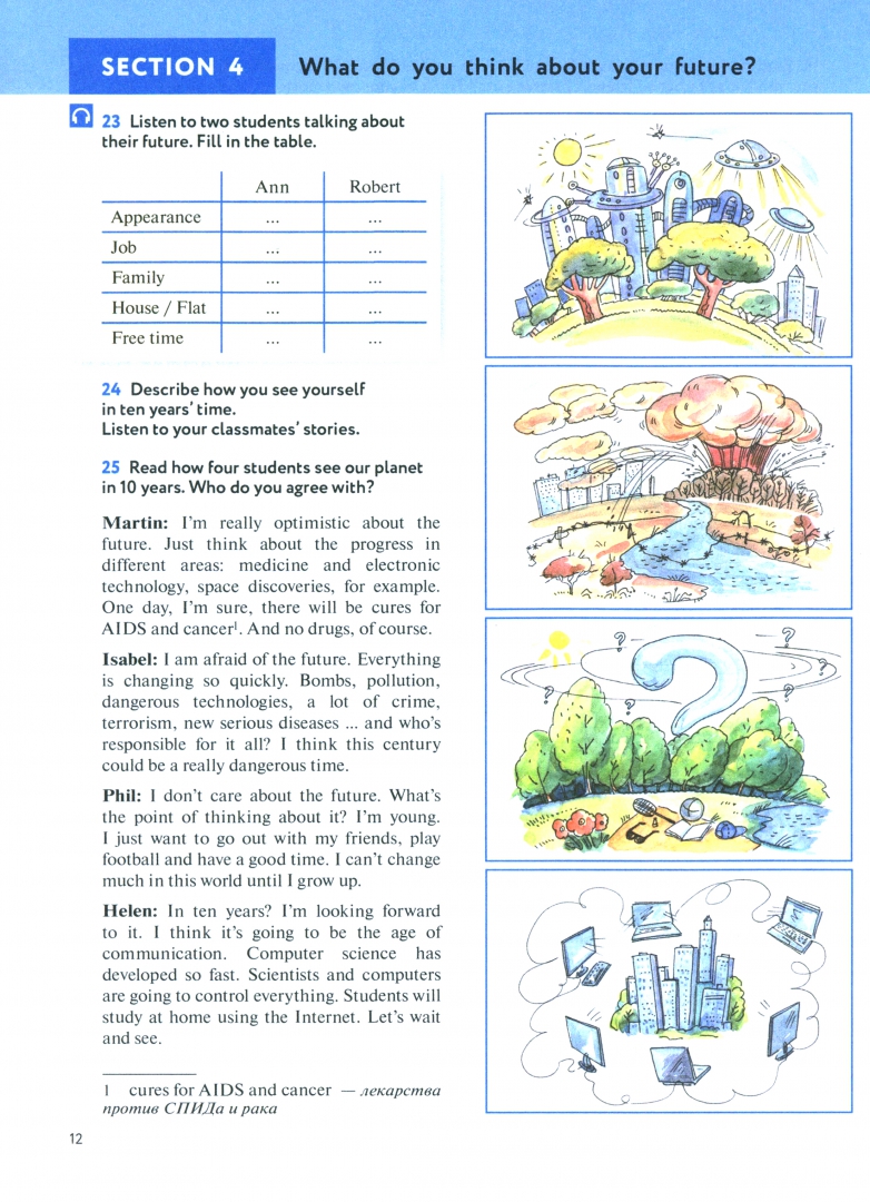 Тематика и аутентичный материал, используемые в учебном пособии, отобраны с учётом интересов семиклассников, ориентированы на выбор будущей профессии и продолжение образования.