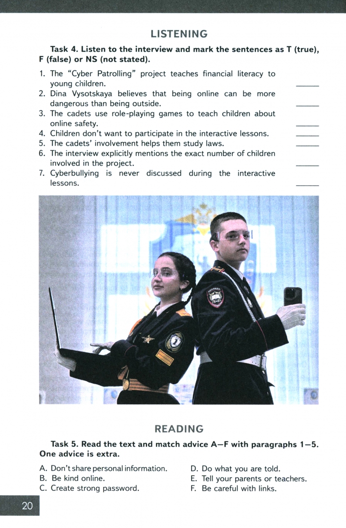 Учебное пособие предназначено для изучения английского языка в 10-11 профильных классах школы и образовательных учреждений среднего профессионального образования, реализующих программы подготовки в сфере обеспечения общественной безопасности. Материалы издания включают в себя разнообразные тексты и задания для отработки лексики обихода служб органов безопасности, представлены разнообразные упражнения, направленные на формирование умений в чтении, аудировании, устной и письменной речи. Учебное пособие знакомит учащихся с профессиями сотрудников органов безопасности и затрагивает большой спектр актуальных профессионально ориентированных тем. Издание включает 4 модуля по 8 уроков в каждом, а также словарь специализированной лексики и встроенную книгу для чтения, посвященную героям специализированных служб. В конце каждого модуля разработан итоговый урок в нестандартных форматах, позволяющий актуализировать полученные знания и подготовиться к устному высказыванию.
