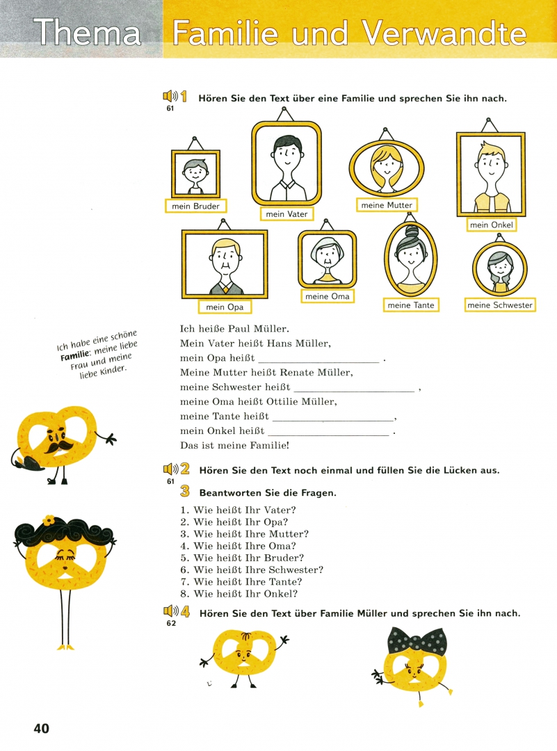 Учебное пособие "Немецкий язык. Слушаем и говорим. Уровень А1" предназначено для начинающих изучать немецкий язык на уровне А1. Оно включает в себя 7 лексических тем, каждая из которых сопровождается соответствующими фонетическими записями с правильным произношением, а также большим количеством диалогов на актуальную лексику. В каждой теме вас сопровождают господин Брецли и его семья. Их содержательные заметки и комментарии на немецком языке очень важны и полезны для обучающихся.