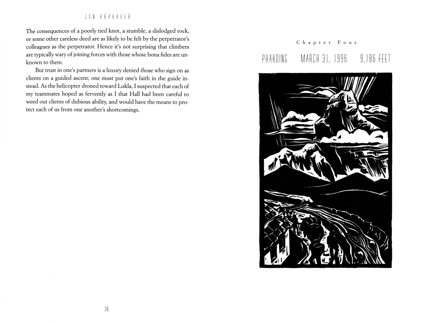 As the journey up the mountain progresses, Krakauer puts it in context by recalling the triumphs and perils of other Everest trips throughout history. The author's own anguish over what happened on the mountain is palpable as he leads readers to ponder timeless questions.