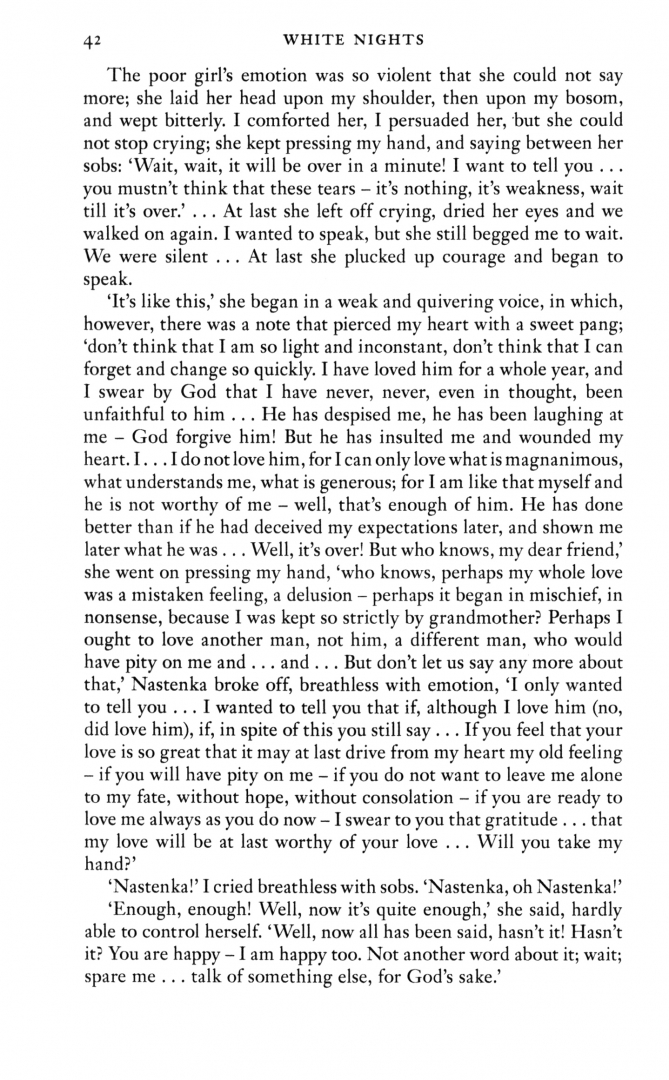 ‘White Nights’ is one of Dostoevsky’s earlier short stories but one of his most enduringly popular. It tells the story of four nights in the life of the lonely narrator, who meets and falls in love with the mysterious and beautiful Nastenka.