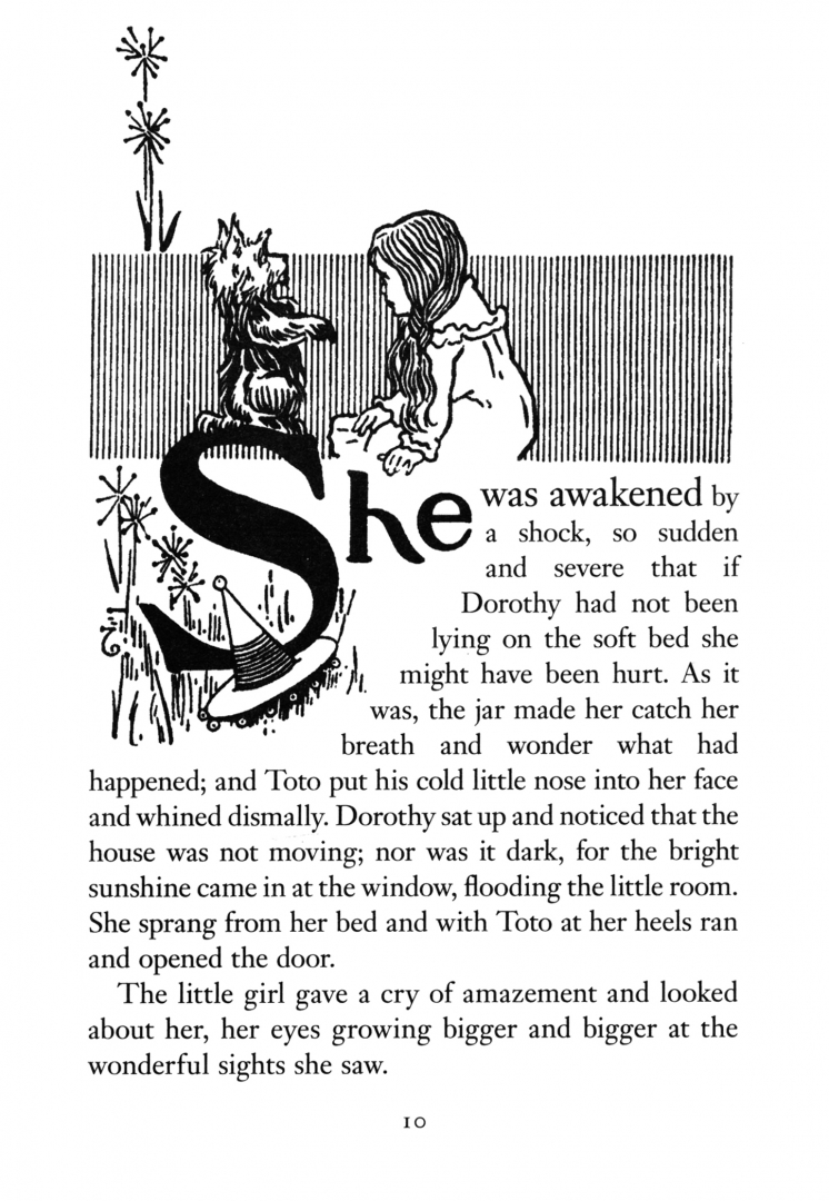 In The Wonderful Wizard of Oz, a huge cyclone transports the orphan Dorothy and her little dog Toto from Kansas to the Land of Oz, and she fears that she will never see Aunt Em and Uncle Henry ever again. But she meets the Munchkins, and they tell her to follow the Yellow Brick Road to the Emerald City where the Wonderful Wizard of Oz will grant any wish. On the way, she meets the brainless Scarecrow, the Tin Woodman and the Cowardly Lion. The four friends set off to seek their heart’s desires, and in a series of action-packed adventures they encounter a deadly poppy field, fierce animals, flying monkeys, a wicked witch, a good witch, and the Mighty Oz himself.