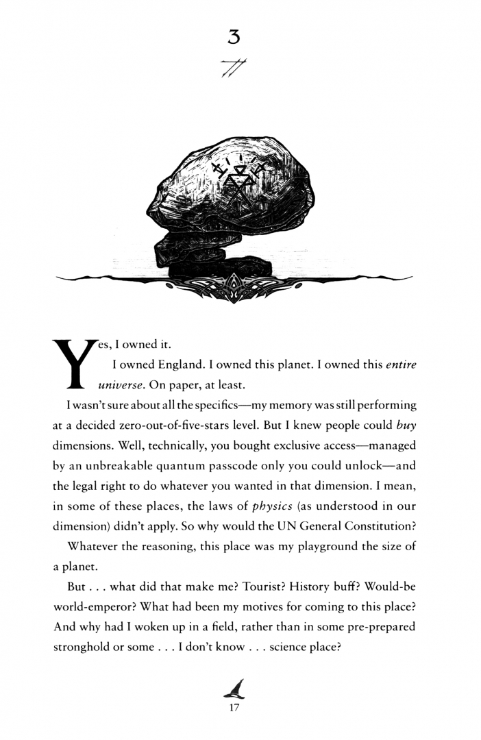 A man awakes in a clearing in what appears to be medieval England with no memory of who he is, where he came from, or why he is there. Chased by a group from his own time, his sole hope for survival lies in regaining his missing memories, making allies among the locals, and perhaps even trusting in their superstitious boasts. His only help from the "real world" should have been a guidebook entitled The Frugal Wizard's Handbook for Surviving Medieval England, except his copy exploded during transit. The few fragments he managed to save provide clues to his situation, but can he figure them out in time to survive?