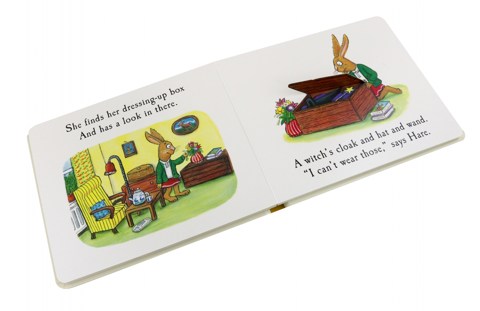It's time for a dance in Acorn Wood! But Hare needs a new dress first . . . Lift the flaps to join in the excitement as Hare hunts for something to wear, then heads to Acorn Hall for a party with her friends.