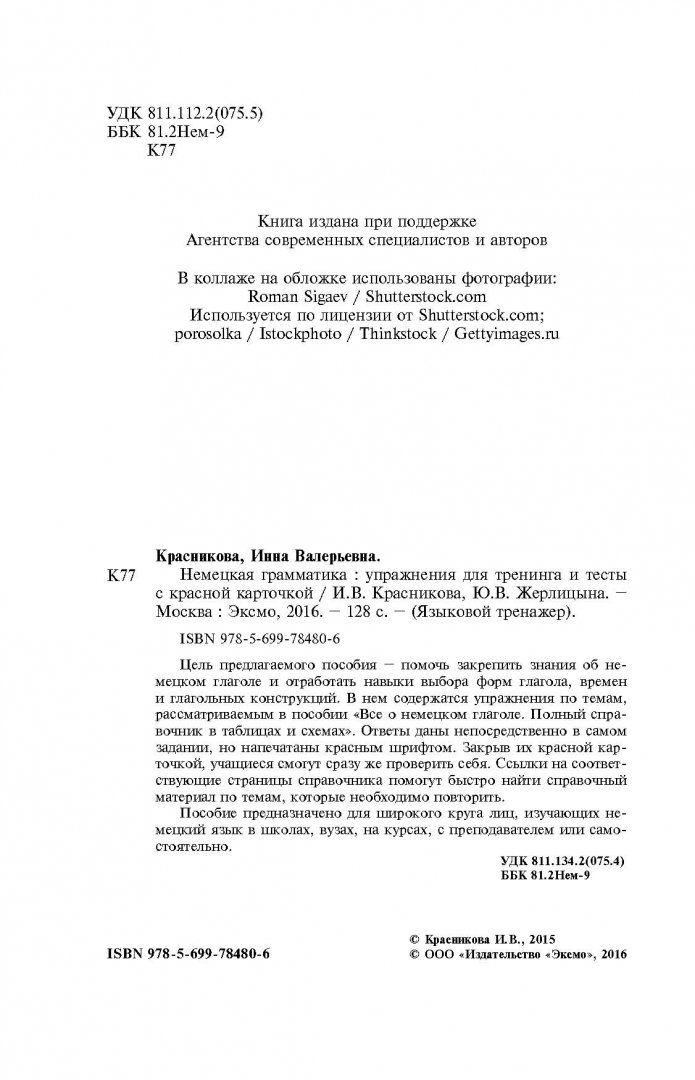 Об ошибках и неточностях в описании товара Немецкая грамматика. Упражнения для тренинга и тесты с красной карточкой за авторством Красникова Инна Валерьевна, Жерлицына Юлия Викторовна Вы можете сообщить нам по почте shop@deltabook.ru