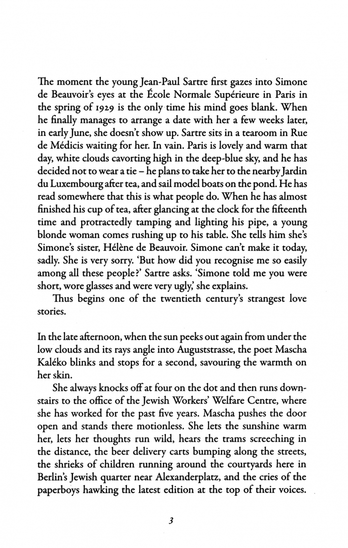 Jean-Paul Sartre waits anxiously in a Parisian cafe for his first date with no-show Simone de Beauvoir. Marlene Dietrich slips from her loveless marriage into the dive bars of Berlin. Father and son Thomas and Klaus Mann clash over each other's homosexuality. And Vladimir Nabokov lovingly places a fresh-caught butterfly at the end of Vera's bed. Little do they all know, the book burning will soon begin.